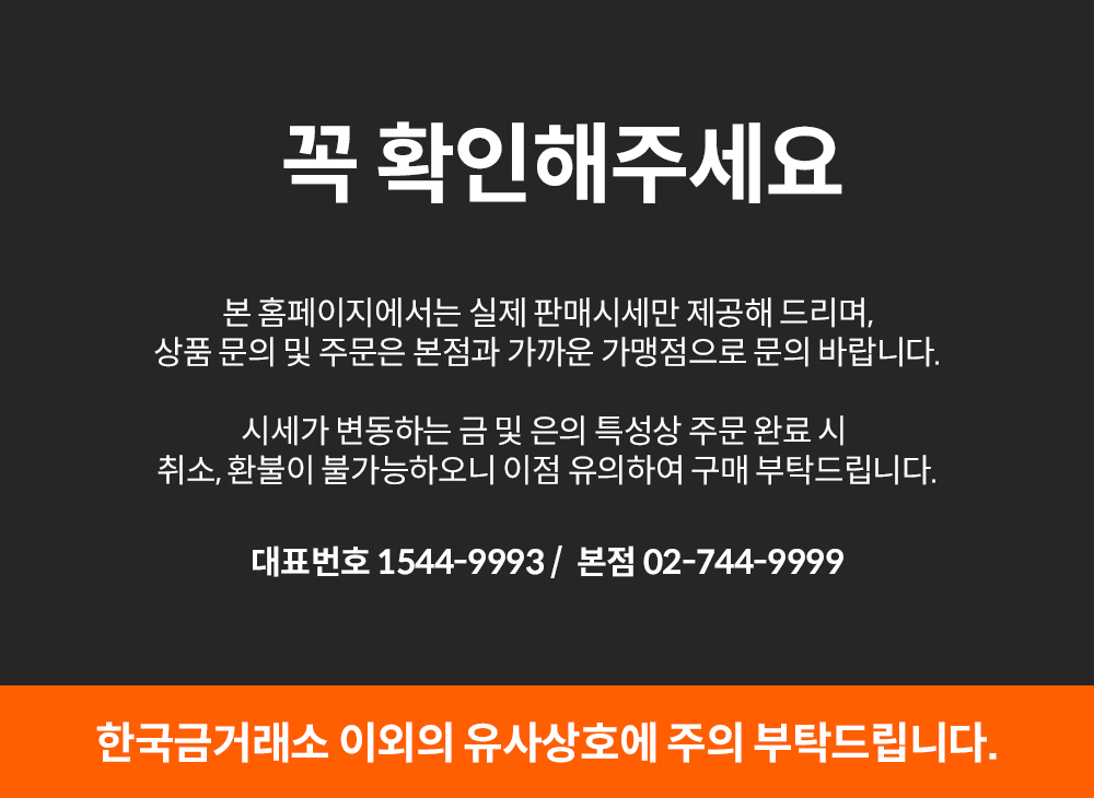 금 및 은은 시시각각 변동하므로 주문이 이뤄지면 취소, 환불이 불가능하기에 유의하여 주문하시기 바랍니다.